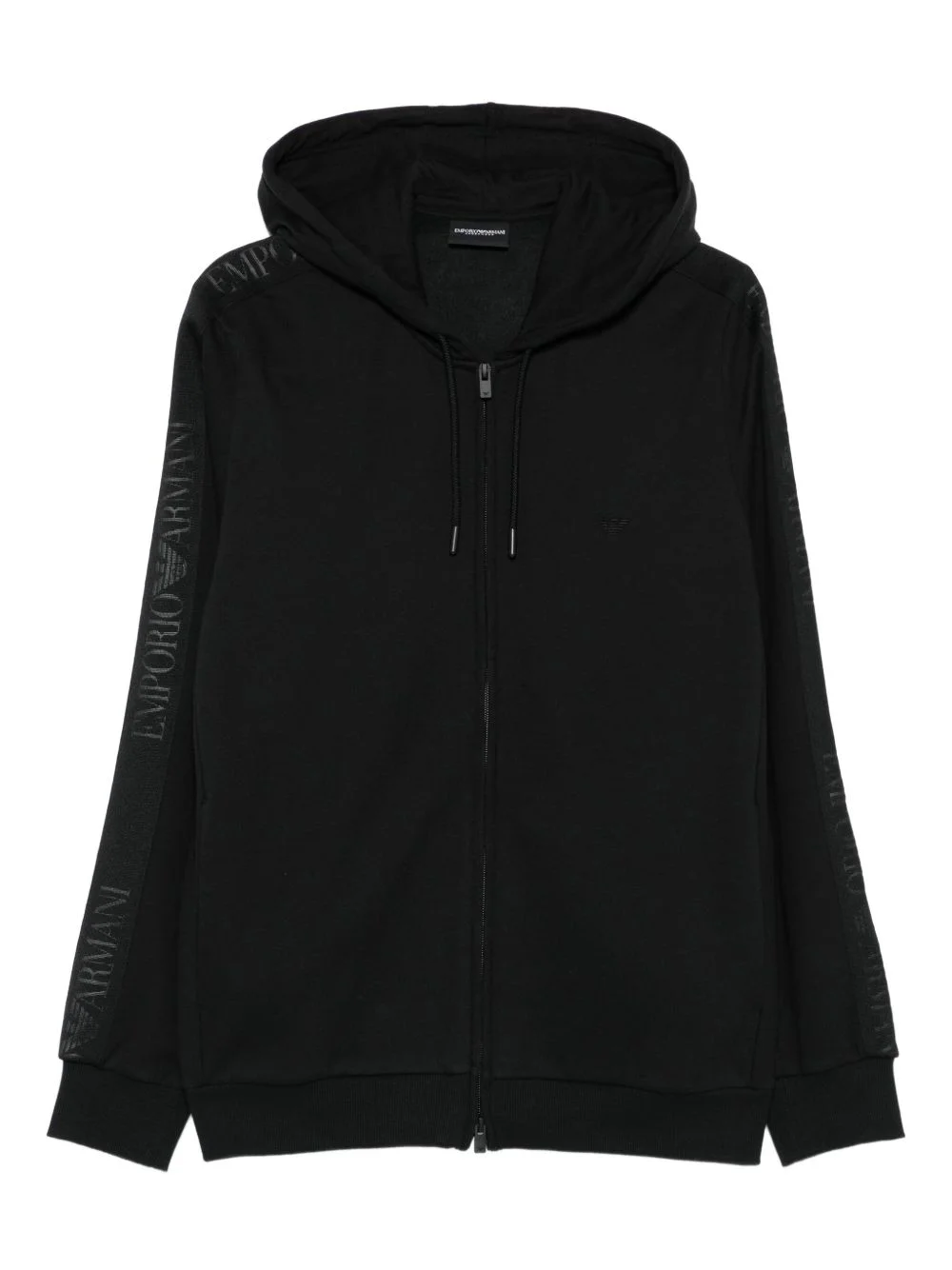 logo-tape hooded zip-up hoodie Highlights - Black - Hooded neckline - Full zip fastening - Long sleeves - Logo tape sleeve detail - Cotton composition Imported Composition Outer: Cotton 60%, Polyester 40% Lining: Cotton 60%, Polyester 40% Washing instructions Machine Wash
