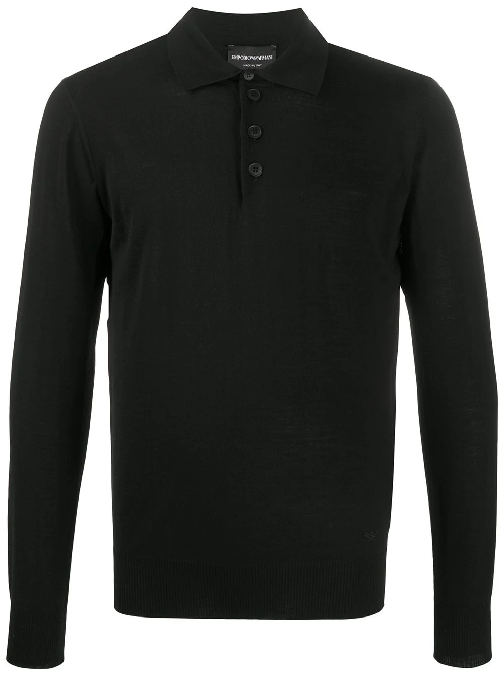 long sleeve polo shirt Highlights - Black - Virgin wool - Button-down collar - Long sleeves - Straight hem Made in Italy Composition Virgin Wool 100% SIZE & FIT Model measurements Height 6 ft 2 in(1.87 m) Bust/Chest 37.79 in(96 cm) Hips 37.79 in(96 cm) Waist 30.31 in(77 cm) FittingInformation This piece fits true to size. We recommend you get your regular size Cut for a relaxed fit Made with a mid-weight fabric