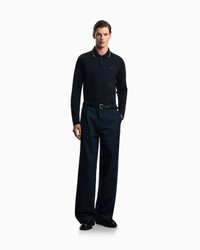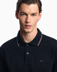 Long-sleeved polo shirt in a fresh, draped pique fabric that adds understated elegance to the item. Embroidered micro eagle on the chest and contrasting striped inserts on the collar. This item belongs to the Essentials clothing selection, the Emporio Armani capsule collection that is an evergreen statement of style: an ongoing collection with clean, well-designed shapes for a wardrobe that meets the demands of any season. These “essential”, versatile pieces are a must-have for the male wardrobe. Product Code: 8N1FB51JPTZ10920 Details Composition 96% Cotton 4% Elastane Pique Polo-shirt collar Partial closure with buttons Long sleeves Eagle embroidery on the chest Side slits at the hem Fitting The model is 188 cm tall and is wearing size 48/M (Italian Size)