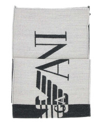 maxi logo fringed scarf Highlights - Black and grey - Fringed edges - Maxi logo pattern - Jacquard weave - Rectangular shape Made in Italy Composition Acrylic 39%, Wool 29%, Polyester 18%, Viscose 10%, Elastane 4% SIZE & FIT Measurement LENGTH 70.86 in(180 cm) WIDTH 13.77 in(35 cm)