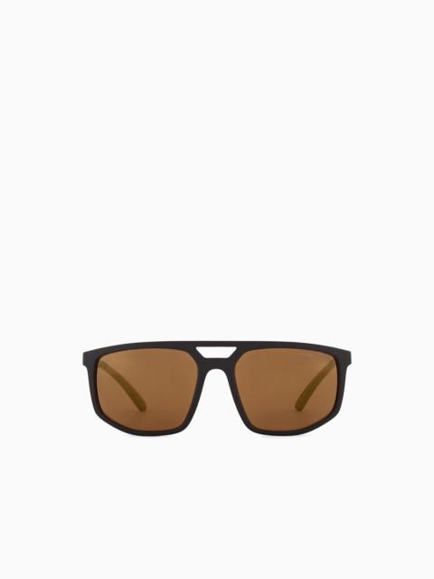 Men's sunglasses made of bio-based nylon fibre. This style features a double-bridge shape and eagle logo on the temple that reflect modern style in easy-to-wear shapes. Universal fit: the unique construction allows for a universal fit suitable for different face shapes and sizes. Product Code: EA4248ULNLP62606GL