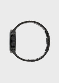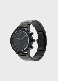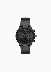 43mm watch features a black dial with gunmetal stick indexes, chronograph movement and black stainless steel bracelet. Product Code: AR11242_NLP1_NLC Details Composition 100% Stainless Steel Movement: Quartz/Chrono Dial color: Black Case size: 43mm Case material: Stainless steel Case color: Black Strap/Bracelet: Black IP stainless steel Atm: 3
