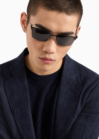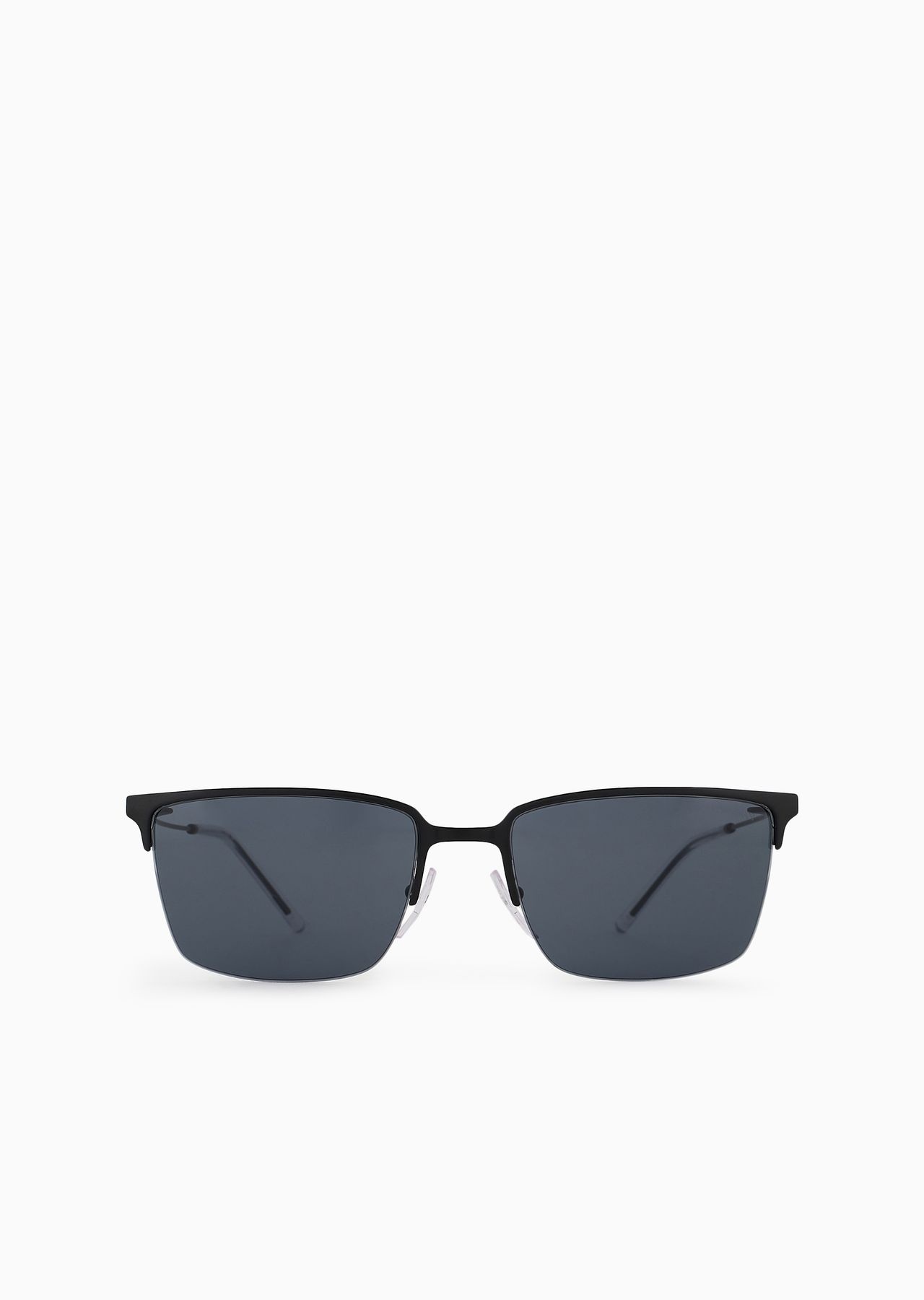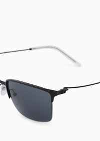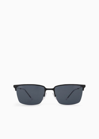 Men’s square metal sunglasses with upper detail. Featuring nose pads with metal base for added comfort. Asian fit. Product Code: EA2155.L300187.L158.L Details Composition 100% Metallic fiber Frame material: metal Shape: aviator Lens diameter/bridge width/temple length: 56/19/145 mm Frame colour: matte black Lens colour: smoky blue Available for prescriptions: yes, standard