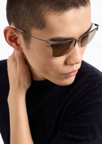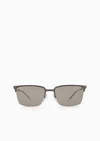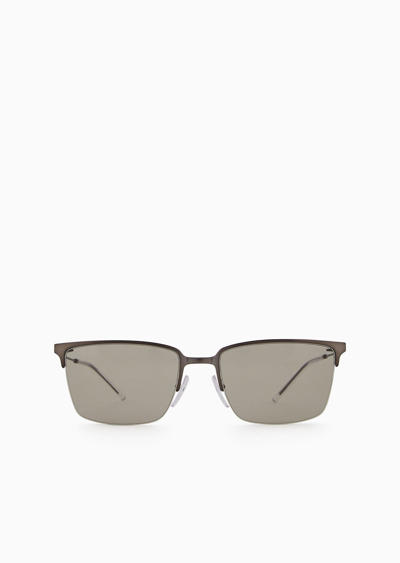 Men’s square metal sunglasses with upper detail. Featuring nose pads with metal base for added comfort. Asian fit. Product Code: EA2155.L30033.L158.L Details Composition 100% Metallic fiber Frame material: metal Shape: aviator Lens diameter/bridge width/temple length: 56/19/145 mm Frame colour: matte steel Lens colour: light grey Available for prescriptions: yes, standard
