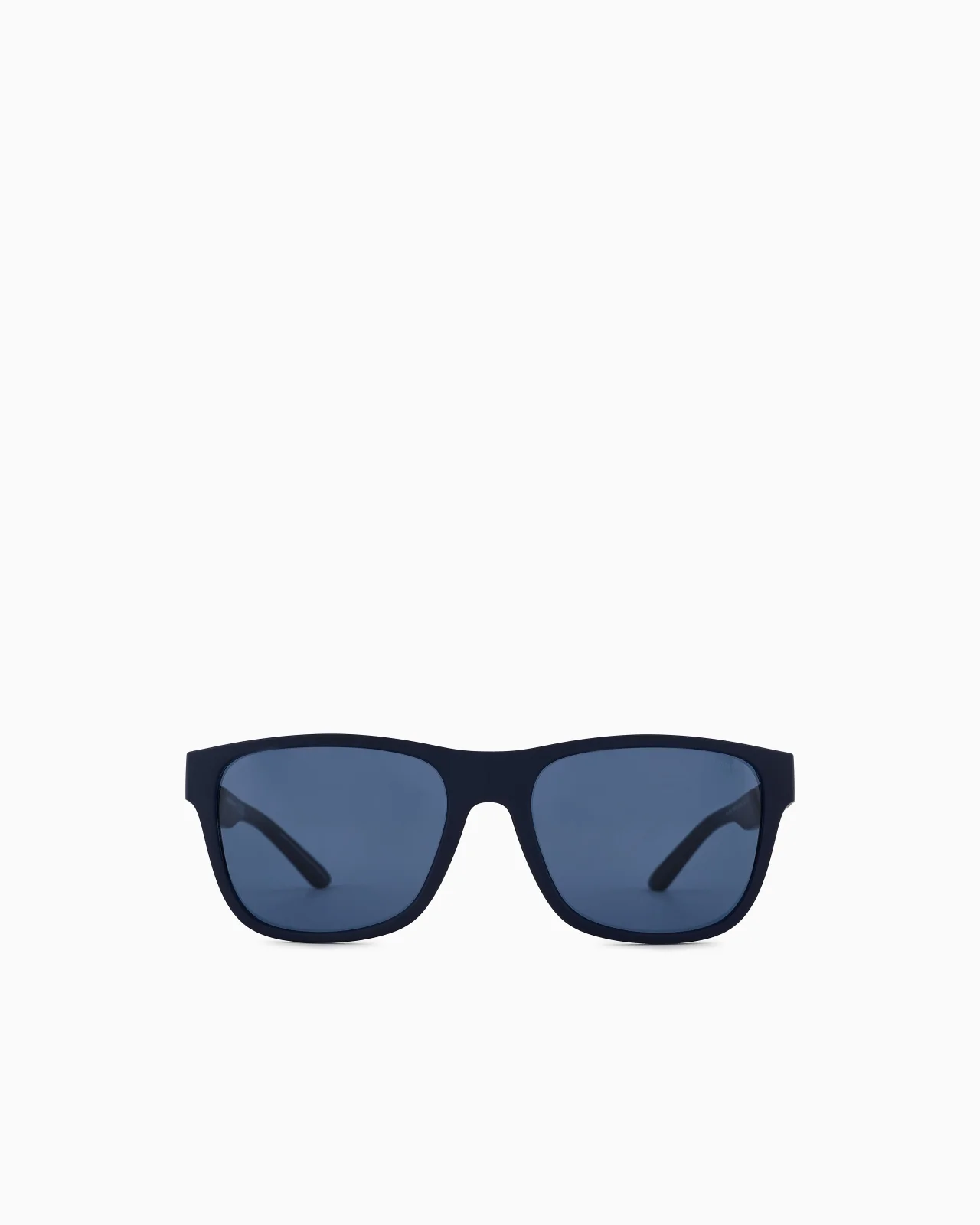 Men's sunglasses made of bio-based nylon fibre in a square shape. The style is embellished with a contrasting eagle logo on the temple for a unique athletic allure. Product Code: EA4243LNLP624480L