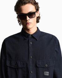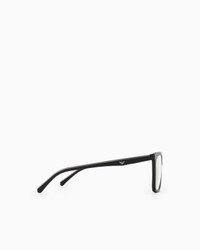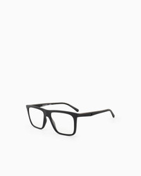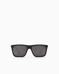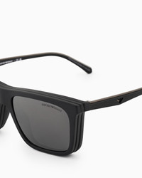 Men's sunglasses in a square shape. The style features interchangeable, magnetic clip-on frame lenses. The masculine, athletic style is enhanced by the construction with bio-based nylon fibre parts. Product Code: EA4258LNLP50011WL