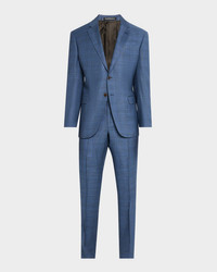 - Emporio Armani suit in subtle grid check - Classic fit - Virgin wool/viscose - Dry clean - Imported - Jacket: - Notch lapels; buttonhole at left lapel - Two-button closure - Chest welt pocket - Hip flap pockets - Interior welt pocket - Four-button sleeve finish - Double-vented back - Trousers: - Regular rise - Flat front - Extended button-zip closure - Side slip pockets - Back welt pockets - Full length - Unfinished hem to be tailored to desired length