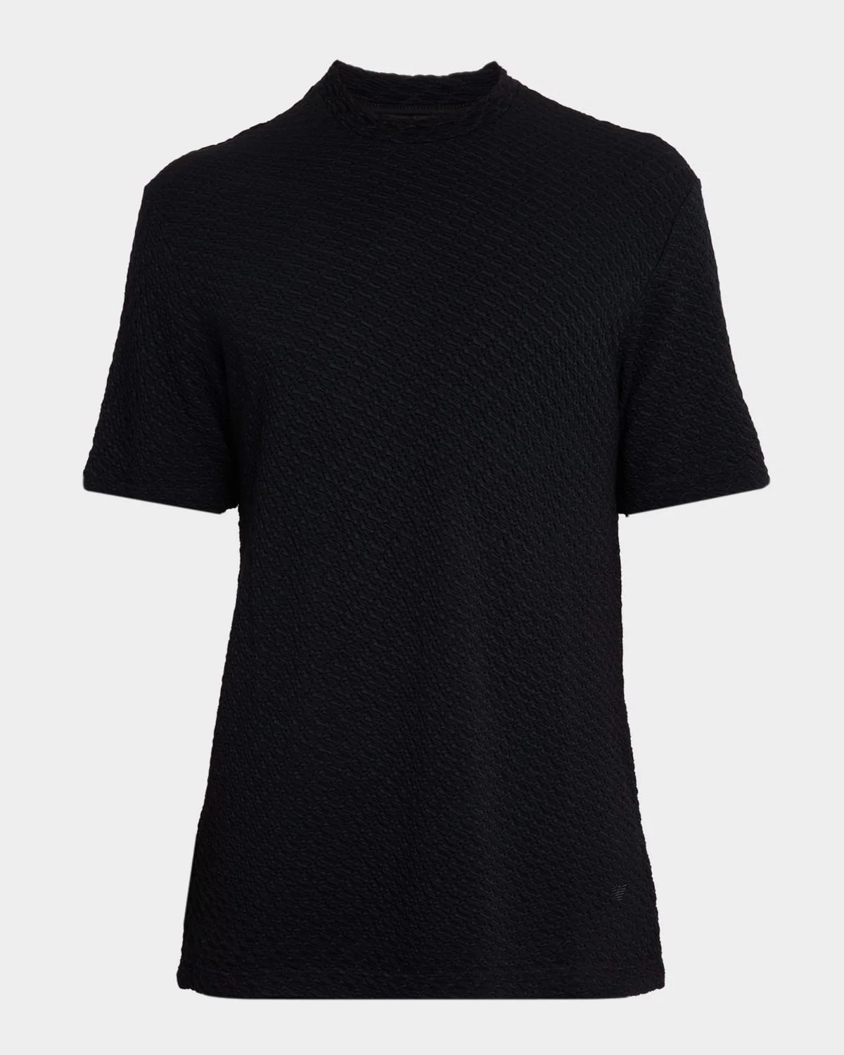 A stylish allover texture adds a unique handfeel to this premium stretch Tshirt from Emporio Armani. Crew neckline Short sleeves Embroidered eagle logo on the hem Pullover style Viscose/polyester/elastane Dry clean Imported