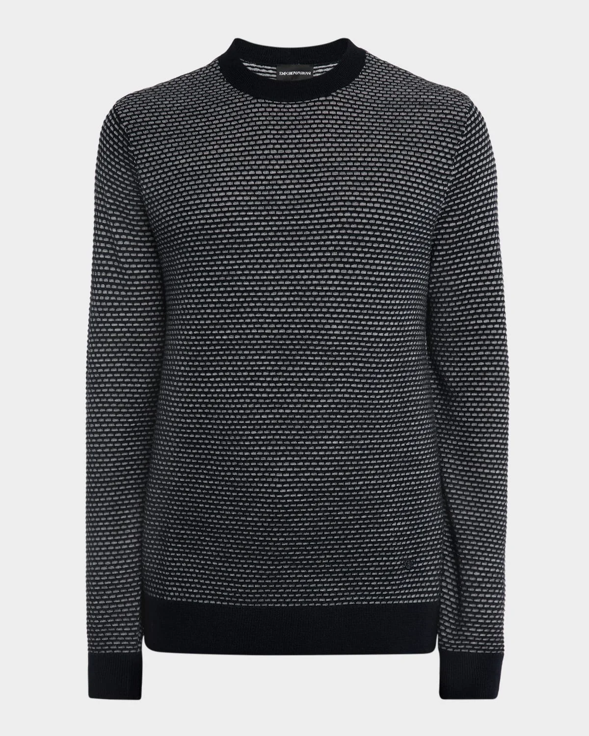 - Emporio Armani sweater in a wool-blend jacquard showcasing a petite scalloped effect - Crew neckline - Long sleeves - Contrast ribbed cuffs and hem - Pullover style - Virgin wool/nylon/polyamide - Dry clean - Imported