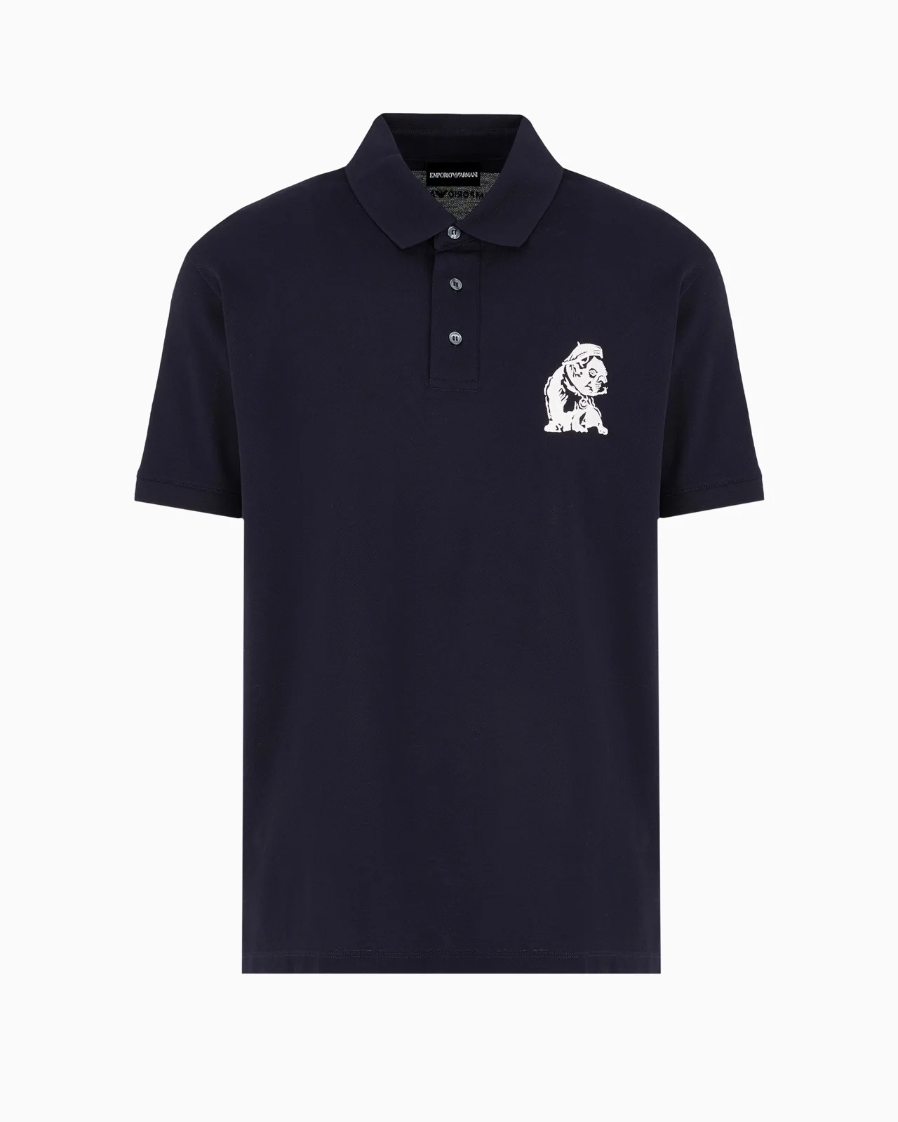 Regular-fit men’s polo shirt made from high-quality, mercerised cotton for added sheen, durability and breathability. Fresh, draped pique fabric brings understated elegance to everyday clothing. The style features fun contrasting embroidery on the chest of a French bulldog puppy. Product Code: 6D1F631JTKZ10920 Details Composition 100% Cotton Regular fit Pique Polo-shirt collar Partial closure with buttons Short sleeves Embroidery on the chest Side slits at the hem Rubberised logo under the collar at the back Fitting Regular fit The model is 188 cm tall and is wearing size 48/M (Italian Size)