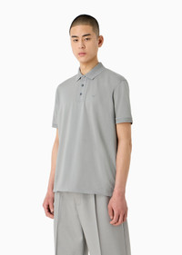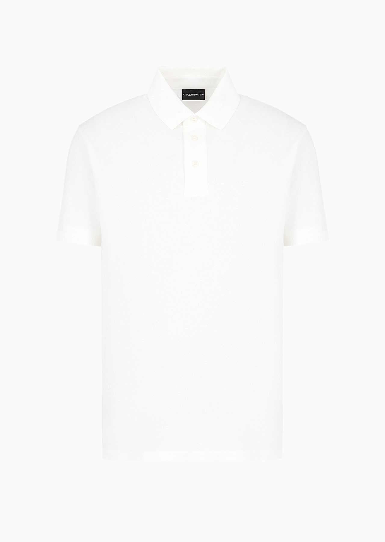 Polo shirt made from high-quality, mercerised cotton for added sheen, durability and breathability. Fresh, draped pique fabric adds understated elegance to everyday outfits. Chevron-patterned collar and armhole trim provide a distinctive allure. Product Code: 3D1FF21JTKZ10101 Details Composition 100% Cotton Regular fit Chevron-trimmed classic collar Partial closure with buttons Short sleeves Chevron trim at the armholes Eagle embroidery on the chest Side slits at the hem Fitting Regular fit The model is 188 cm tall and is wearing size 48/M (Italian Size)