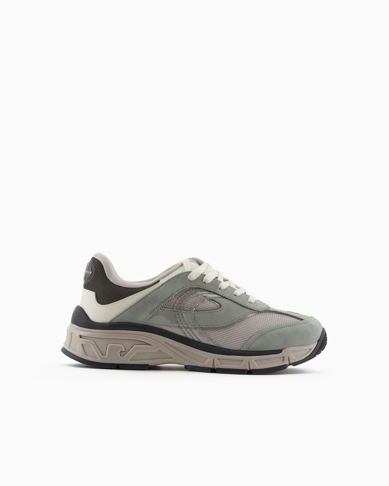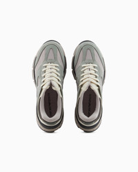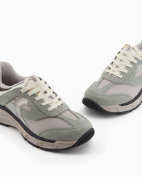 Mesh sneakers with contrasting suede details. The cage-effect side logo on the sole sets this style apart. The midsole is made of EVA for lightweight comfort. The mix of materials makes these shoes a reinterpretation of chunky, modern, versatile styles. Mesh upper Suede details Logo back tab Lace-ups Rounded toe Rubber soles Product Code: X4X674XR202U220