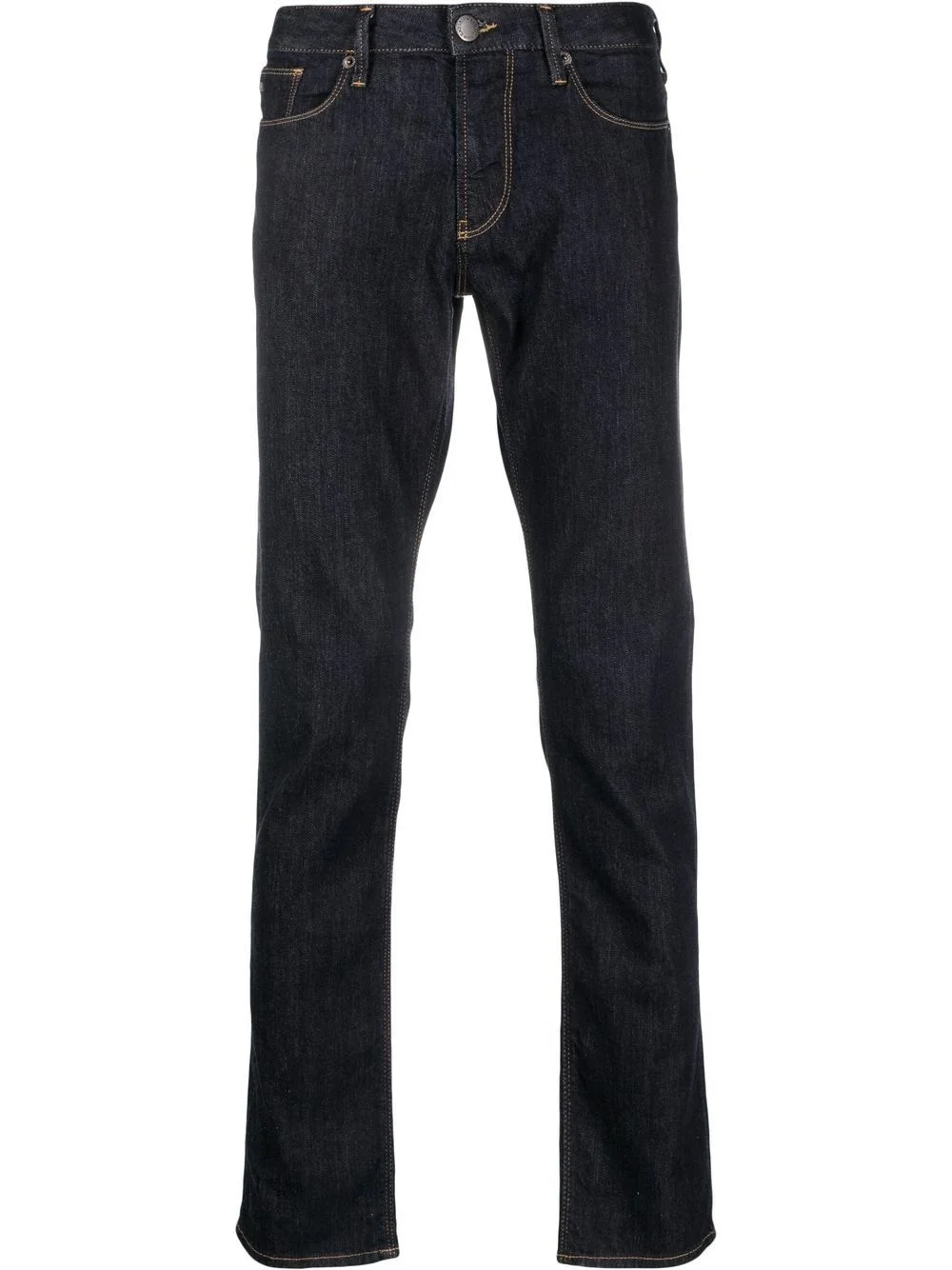 mid-rise slim-fit jeans midnight blue stretch-cotton contrast stitching mid-rise button fly fastening belt loops classic five pockets slim cut Imported Composition Cotton 98%, Spandex/Elastane 2% SIZE & FIT Model measurements Height 6 ft 2 in(1.87 m) Bust/Chest 36.41 in(92.5 cm) Hips 37 in(94 cm) Waist 29.52 in(75 cm)