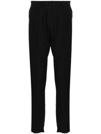 mid-rise tapered linen trousers Highlights - Black - Linen/flax - Raised seam detail - Mid-rise - Belt loops - Elasticated waistband - Concealed fly and button fastening - Two side slit pockets - Rear welt pocket - Tapered leg Imported Composition Linen/Flax 100% SIZE & FIT Model measurements Height 6 ft 2 in(1.87 m) Bust/Chest 36.41 in(92.5 cm) Hips 37 in(94 cm) Waist 29.52 in(75 cm) FittingInformation Designed for a slim tapered leg, offering a close fit that sits just away from the leg with a closer fit towards the ankle The elasticated waist allows for a comfortable fit Made from a midweight non-stretch fabric This piece fits true to size – take your usual size