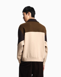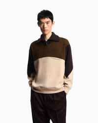 Mock-neck jumper with partial zip fastening, made of virgin wool and embellished with a colour block-effect jacquard that adds character. Fineness: 12 Knit Colour block Breast pocket Pouch pocket Rib-knit trim Product Code: EM004127AF21499M1014
