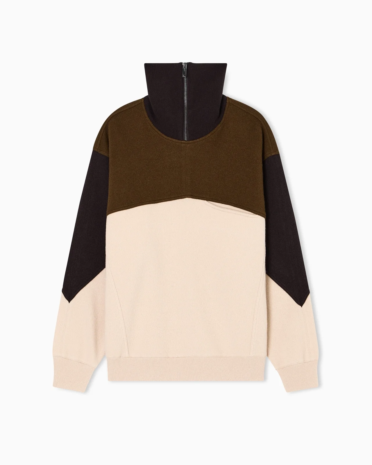 MOCK-NECK JUMPER IN A WOOL COLOUR-BLOCK JACQUARD