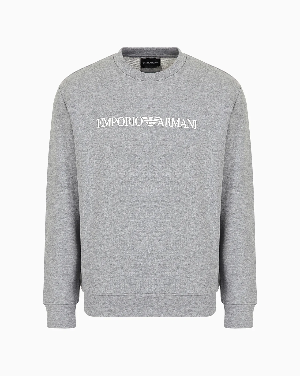 Cotton and modal blend jersey crew-neck sweatshirt. The standout logo print completes the style. This item belongs to the Essentials clothing selection, the Emporio Armani capsule collection that is an evergreen statement of style: an ongoing collection with clean, well-designed shapes for a wardrobe that meets the demands of any season. These “essential”, versatile pieces are a must-have for the male wardrobe. Product Code: 8N1MR61JRIZ1F607 Details Composition 67% Modal 33% Cotton Jersey Crew neck Long sleeves Logo print Fitting The model is 188 cm tall and is wearing size 48/M (Italian Size)