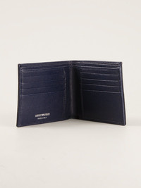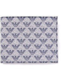 monogram print wallet Navy calf leather blend wallet from Emporio Armani featuring a monogram print, a note compartment and multiple card slots. Made in Italy Composition Calf Leather 50%, PVC 38%, Polyester 6%, Cotton 4%, Polyurethane 2% SIZE & FIT Measurement WIDTH 4.52 in(11.5 cm) HEIGHT 3.93 in(10 cm) DEPTH 0.78 in(2 cm) Washing instructions ARMANI JEANS