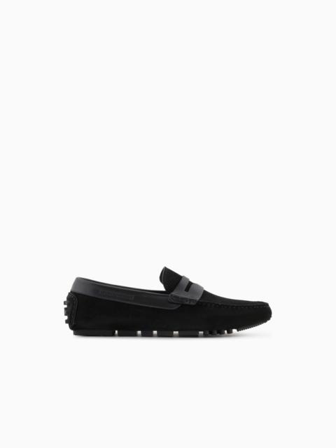 MULTI-STRIPED SUEDE DRIVING LOAFERS