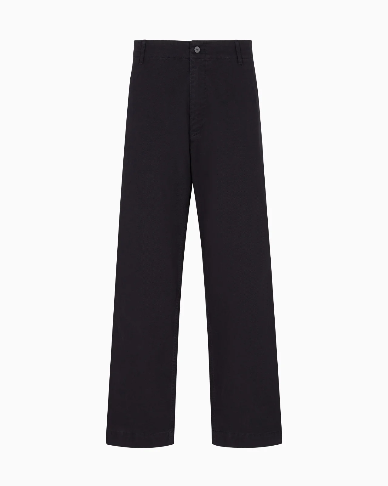 Wide-leg trousers in cotton drill, a carded diagonal-weave fabric with a structured feel similar to denim but piece-dyed not yarn-dyed. Imagine walking the hectic streets of New York, where every corner tells a story, every street has its own pace. The New York AW25 collection is inspired by this unique energy, intertwining the dynamism of the metropolis with comfort and modern street style. Drill Waist with belt loops Zip and button closure Side pockets Back patch pockets Back logo patch Product Code: EM001229AF19310UB109