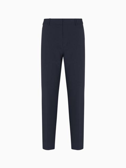 Chinos made of a nylon spandex with a light, textured appearance, in a modern design that blends with the exclusive seersucker fabric, one of the textures favoured by Armani and that gives the entire piece a dynamic, crisp feel. Nylon Seersucker Chinos Waist with belt loops Zip and hook closure Side pockets Back welt pockets EA logo plate Product Code: EM003166AF18781UB118