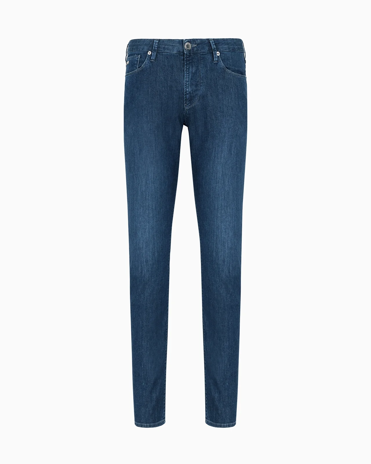 This jeans style features a low waist and fitted leg on a fabric with a worn-effect wash. Zip closure. Slim fit. This item belongs to the Essentials clothing selection, the Emporio Armani capsule collection that is an evergreen statement of style: an ongoing collection with clean, well-designed shapes for a wardrobe that meets the demands of any season. These “essential”, versatile pieces are a must-have for the male wardrobe. Product Code: 8N1J061D85Z10942 Details Composition 99% Cotton 1% Elastane Slim fit 8 oz washed denim Five-pocket style Low-rise waist with loops Zip and button closure Coin pocket with logo plate Logo label Eagle logo plate Fitting Slim fit The model is 188 cm tall and is wearing size 32