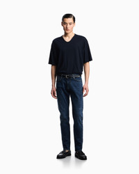 Men’s jeans made from stretch cotton denim that stand out for their distinctive washed canvas featuring whiskering and decorative paint marks on the front and back. The garment has a slim fit, low-rise waist and zip closure. Slim fit. Slim fit 11 oz denim Five-pocket style Low-rise waist with loops Zip and button closure Coin pocket with logo plate Leather logo tag Eagle logo plate Product Code: EM000121AF13252FB041