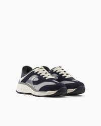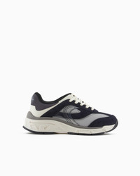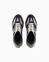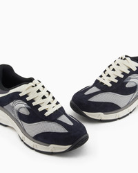 Mesh sneakers with contrasting suede details. The cage-effect side logo on the sole sets this style apart. The midsole is made of EVA for lightweight comfort. The mix of materials makes these shoes a reinterpretation of chunky, modern, versatile styles. Mesh upper Suede details Logo back tab Lace-ups Rounded toe Rubber soles Product Code: X4X674XR202U222