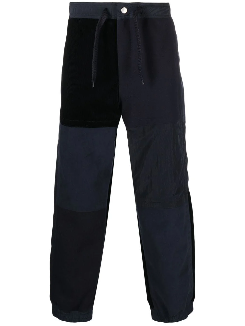 panelled straight-leg trousers blue cotton corduroy detail panelled design drawstring fastening waist front button and zip fastening rear flap pocket straight leg elasticated ankles Imported Composition Outer: Cotton 100%, Polyamide 100% Lining: Polyester 100%, Cotton 100% SIZE & FIT Model measurements Height 6 ft 1 in(1.85 m) Bust/Chest 35.82 in(91 cm) Hips 37.79 in(96 cm) Waist 29.13 in(74 cm) FittingInformation This piece fits true to size. We recommend you get your regular size Designed to be loose over the leg with a fitted waist and hem Made with a mid-weight fabric