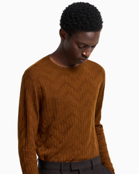 Crew-neck jumper made from a unique virgin wool texture that offers cosiness while the silk blend adds sheen. The patterned knit creates a subtle all-over oversized chevron motif, the brand’s hallmark. Fineness: 16 Knit Patterned knit Chevron motif Crew neck Long sleeves Rib-knit cuffs and hem Product Code: EM002477AF19551U6135