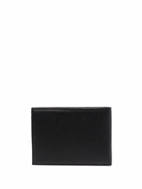 pebbled bi-fold wallet black calf leather logo lettering internal card slots note compartment Imported Composition Outer: Calf Leather 100% Lining: Polyester 100% SIZE & FIT Measurement DEPTH 0.59 in(1.5 cm) LENGTH 5.11 in(13 cm) WIDTH 3.93 in(10 cm)
