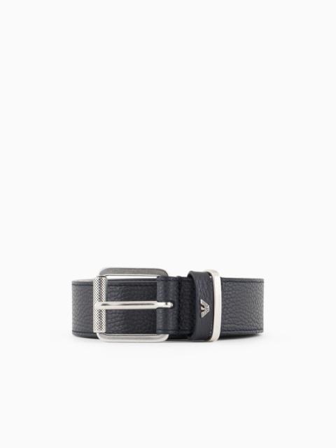 Pebbled-finish cowhide belt with a buckle closure and logo loop. Oversized logo lettering on the back. The must-have accessory in any man’s wardrobe, synonymous with class and elegance in all its simplicity. Leather Pebbled finish Adjustable buckle fastening Oversized logo lettering Made in Italy Product Code: EM001644AF14710UC001