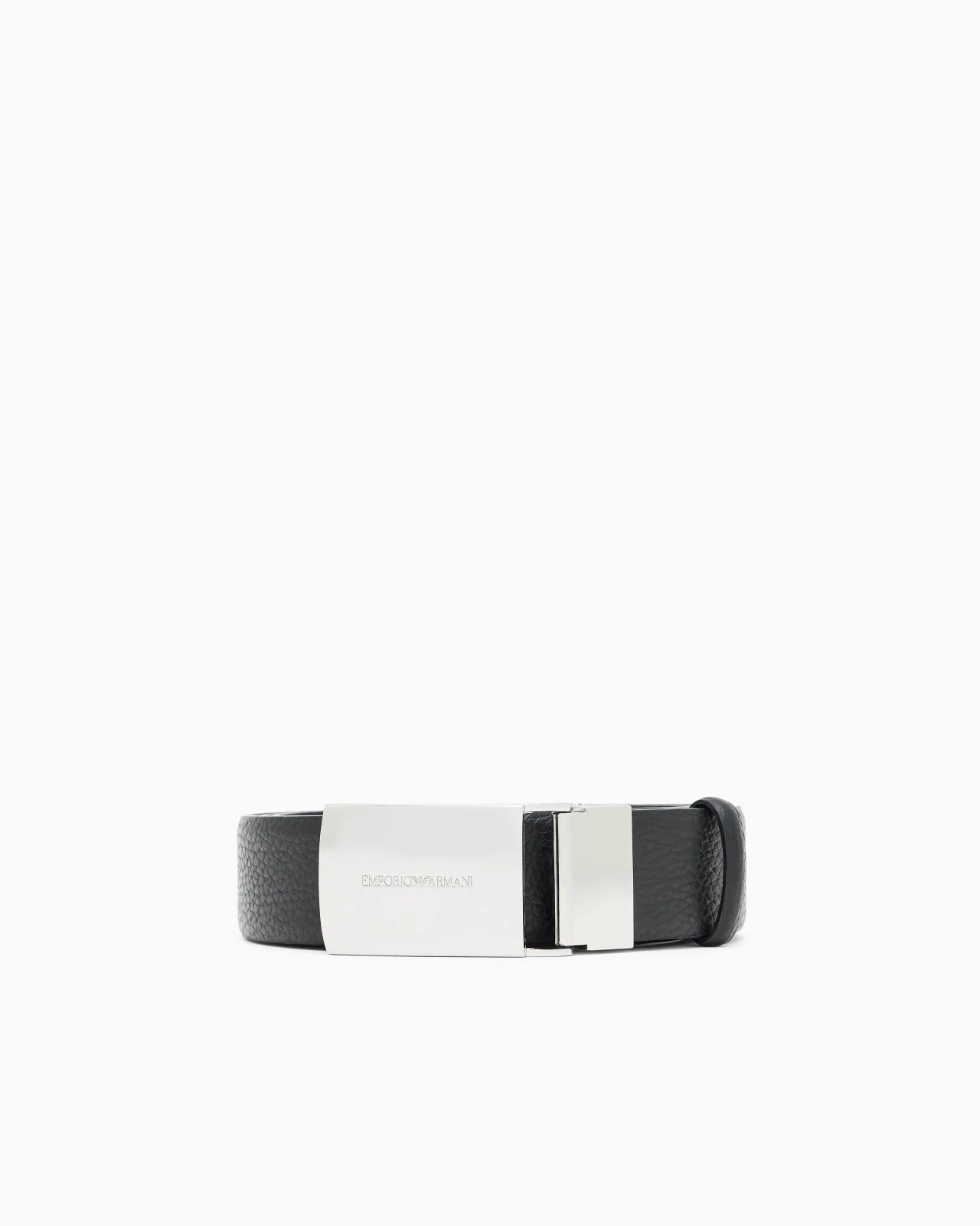 This belt is crafted from cowhide with a pebbled finish and features a logo plate closure. Leather Pebbled finish Metal logo plate Made in Italy Product Code: EM003559AF19350UC001