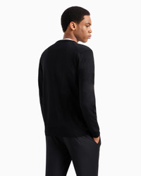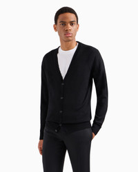 V-neck cardigan with classic front button closure. Made from plain-knit, pure virgin wool, it features a matching-tone, embroidered iconic eagle on the hem. This item belongs to the Essentials clothing selection, the Emporio Armani capsule collection that is a evergreen statement of a style: an ongoing collection with clean, well-designed shapes for a wardrobe that that meets the demands of any season. These “essential”, versatile pieces are a must-have for the male wardrobe. Made in Italy. Fineness: 14. Product Code: 8N1E211M67Z10999 Details Composition 100% Virgin Wool Lightweight knit V-neck Long sleeves Button closing Knitted Solid color Fitting The model is 6' and is wearing size M