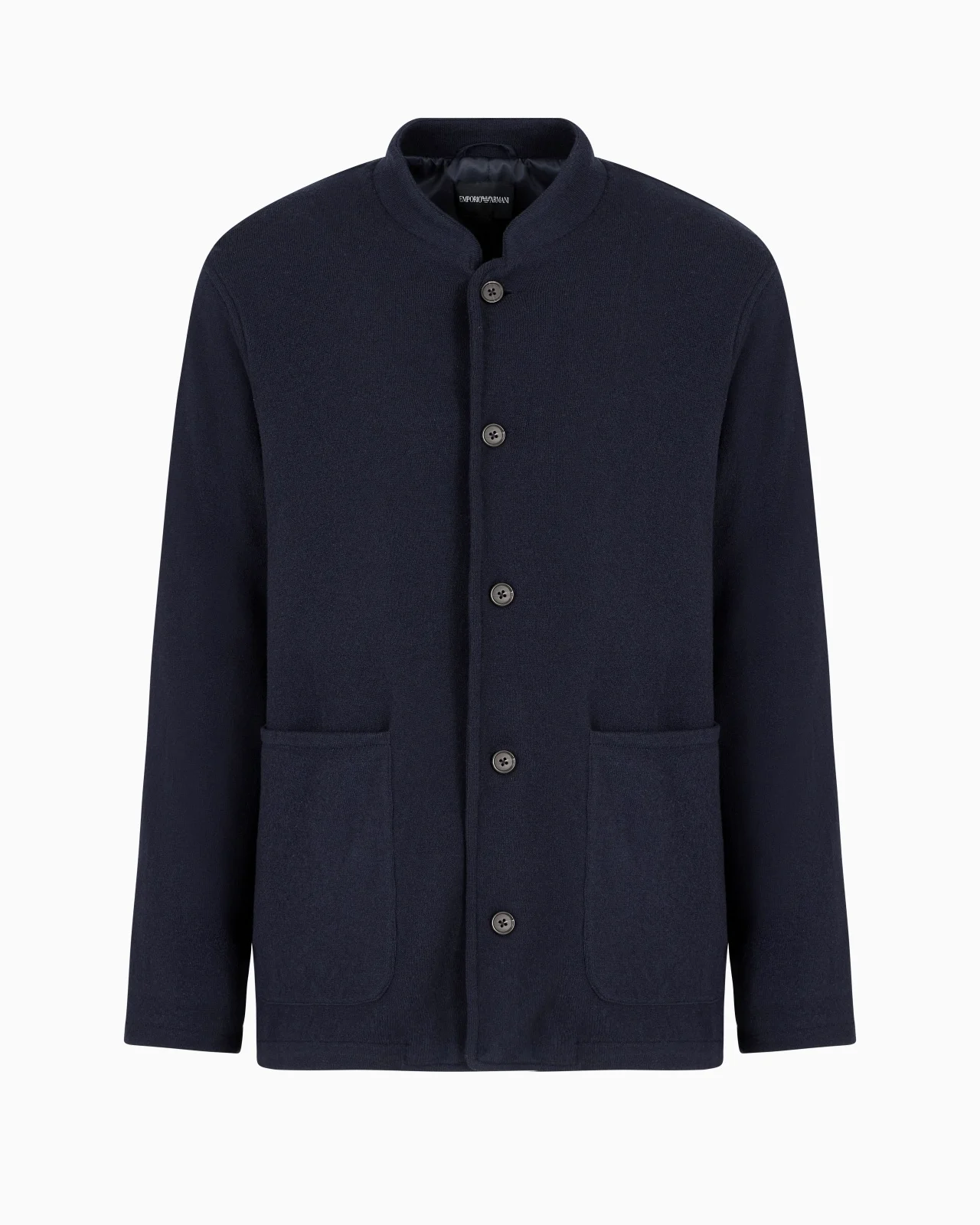 PLATED PLAIN-KNIT VIRGIN-WOOL BLAZER WITH GURU COLLAR
