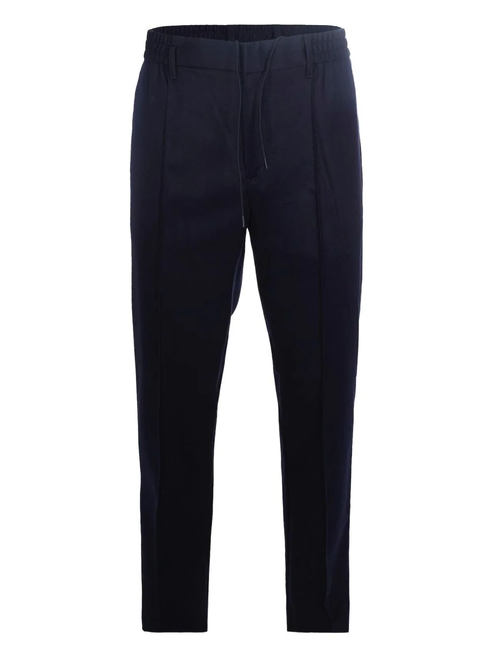 pleat-detail trousers Highlights - Navy blue - Elasticated waistband - Buttoned back pockets - Internal drawstring fastening - Belt loops - Side seam pockets Imported Composition Outer: Virgin Wool 98%, Elastane 2% Lining: Polyester 65%, Cotton 35% Washing instructions Read Manufacturer Guidelines