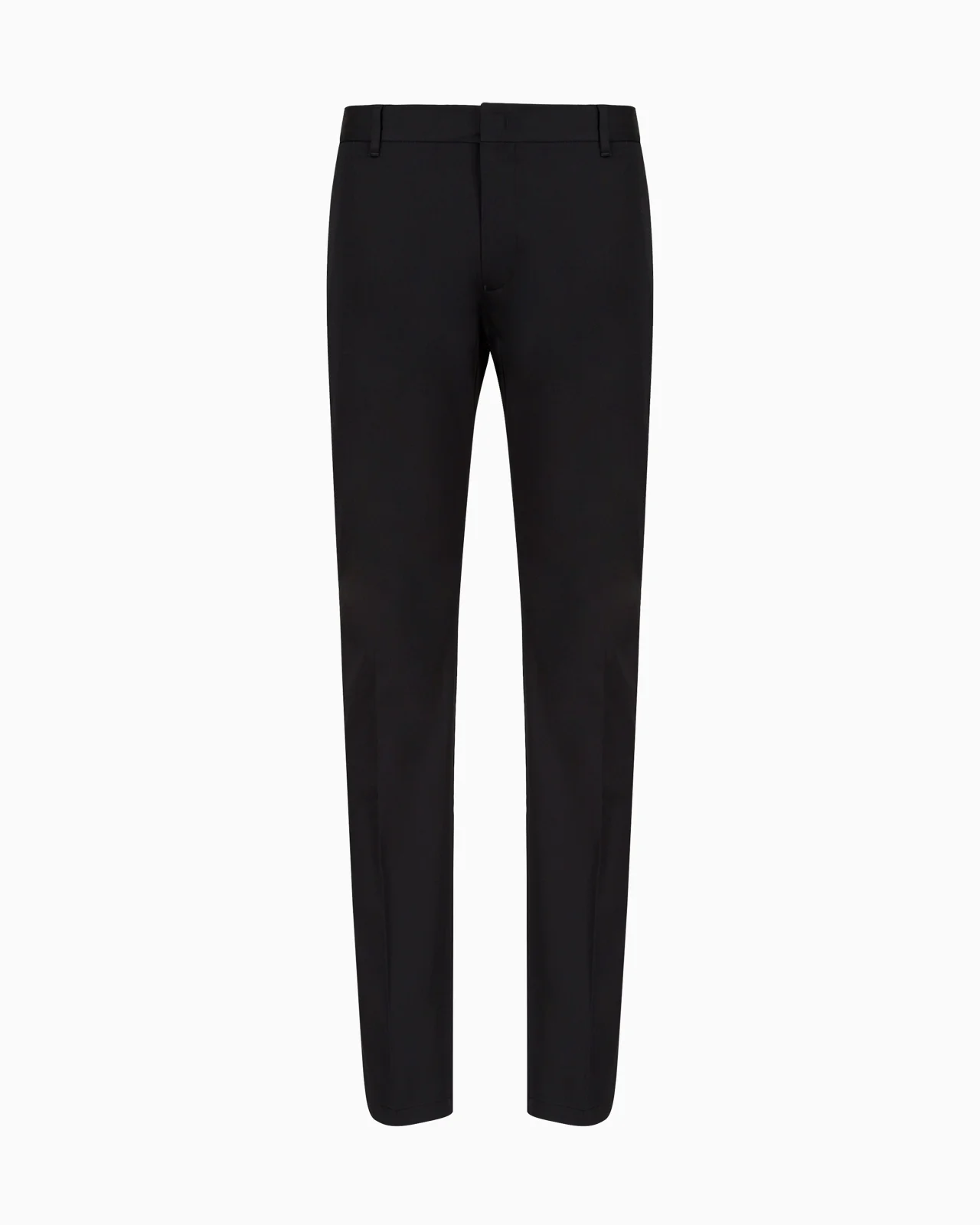 Classic men’s chinos in stretch fabric. An extremely versatile item adaptable to different occasions for a look that is always impeccable, it belongs to the Essentials clothing selection, the Emporio Armani capsule collection that is an evergreen statement of style: an ongoing collection with clean, well-designed shapes for a wardrobe that meets the demands of any season. These “essential”, versatile pieces are a must-have for the male wardrobe. Product Code: 8N1P151NJ7Z10999 Details Composition 97% Cotton 3% Elastane Leg hem width: 16.5 cm Stretch cotton Waist with loops Zip closure and inner hook Side pockets Buttoned back welt pockets EA logo plate Fitting The model is 188 cm tall and is wearing size 48/M (Italian Size)