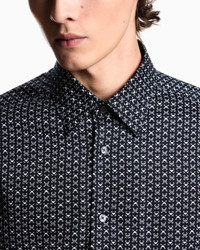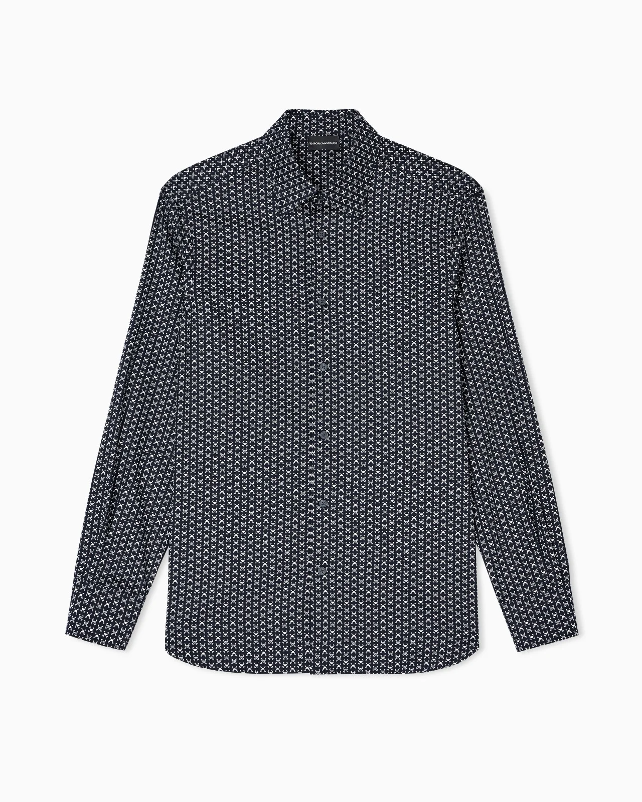Classic-collar shirt made of stretch-cotton fabric with a dense, exclusive all-over printed decorative pattern. A style that completes seasonal looks with a fresh, modern twist. Regular fit Stretch cotton All-over print Classic collar Front buttoning Long sleeves Buttoned rounded cuffs Back yoke Product Code: EM001537AF14130FB323