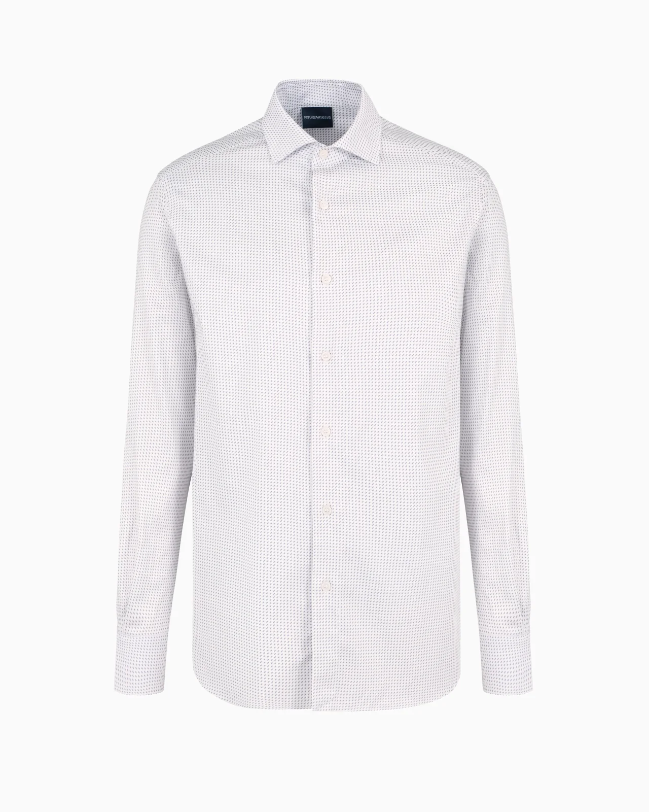 Classic-collar shirt made of stretch-cotton fabric with a dense, exclusive all-over printed decorative pattern. A style that completes seasonal looks with a fresh, modern twist. Product Code: 6D1C861K6BZ1F131 Details Composition 97% Cotton 3% Elastane Stretch cotton All-over print Classic collar Front buttoning Long sleeves Buttoned rounded cuffs Back yoke Fitting The model is 188 cm tall and is wearing size 40