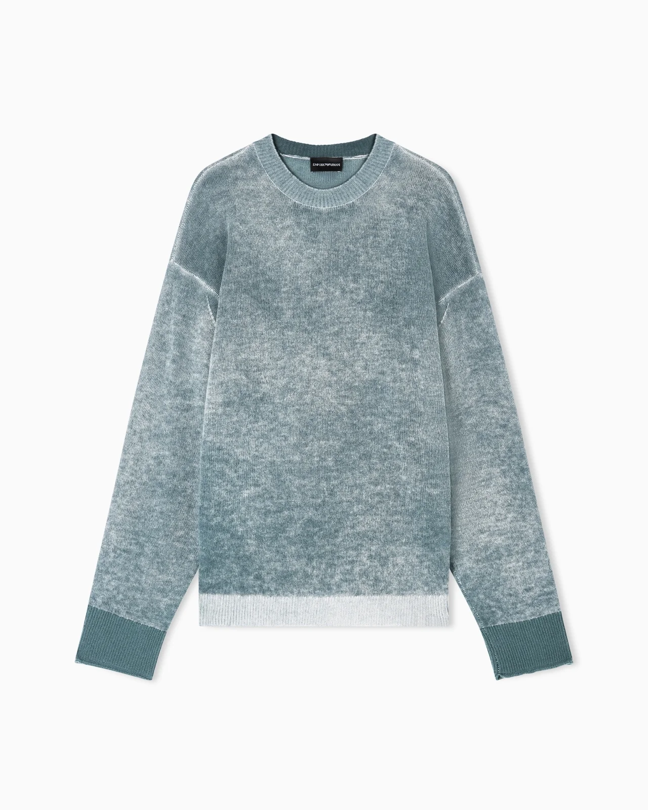 Crew-neck jumper made from a virgin-wool blend with a small percentage of cashmere that adds softness and a touch of luxury. The plain-knit fabric features an exclusive print that adds a unique garment-dyed effect. Fineness: 7 Plain knit Printed fabric Crew neck Raglan sleeves Ribbed trim Product Code: EM004623AF24414U9170