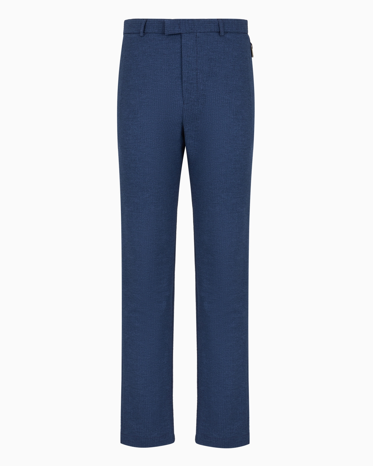 Trousers made of a particularly textured seersucker whose typical dynamic appearance combines with the all-over printed pattern to give the garment a rough look and feel. Product Code: EM000158TE113061UB099 Details Composition 78% Polyester 22% Elastomultiester Technical seersucker Waist with belt loops Zip, hook and button closure Side pockets with zip Fitting The model is 188 cm tall and is wearing size 48/M (Italian Size)