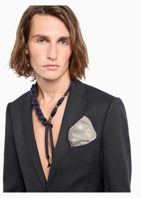 Pure silk pocket square with jacquard weave depicting the collection’s nautical knot motif on a striped background. Add an understated, elegant touch to your jacket: the pocket square. The ultimate men’s accessory, a decorative detail that defines a true man of style. Product Code: 3400334F632100050 Details Composition 100% Mulberry silk Measurements: 33 x 33 cm Silk Jacquard motif Made in Italy