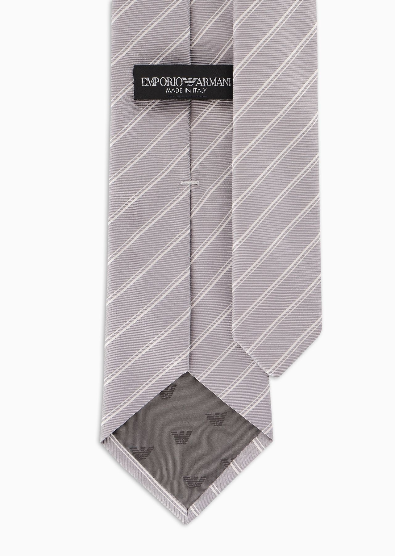 Pure silk tie with a diagonal pattern of jacquard double stripes of different sizes. The tie has always been a symbol of male elegance. As an accessory, it is as essential for modern men in business as it is for special occasions and ceremonies. Product Code: 3402754R641100240 Details Composition 100% Silk Measurements: 146 x 7.5 cm Silk Jacquard Striped Made in Italy