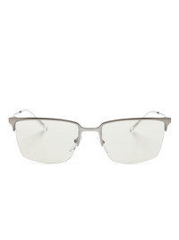 rectangle-frame sunglasses Highlights - Gunmetal grey - Metal - Matte effect - Rectangle frame - Partial rimless - Light brown tinted lenses - Logo lens decal - Nose pads - Logo-engraved arm - Sculpted arms with curved tips - These glasses come with a protective case. Imported Composition Acetate 100%, Metal 100%, Acrylic 100% SIZE & FIT Measurement Arm Length 5.7 in(14.5 cm) Bridge Width 0.74 in(1.9 cm) Lens Diameter 2.28 in(5.8 cm) Total Width 5.9 in(15 cm)