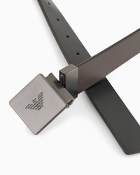 REVERSIBLE BELT IN TWO-TONE LEATHER WITH PLATE