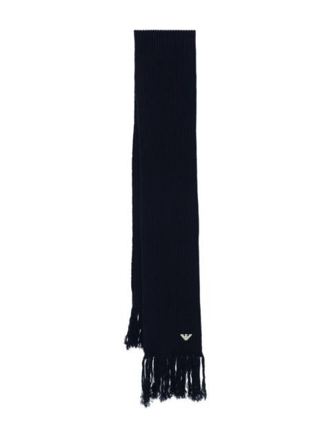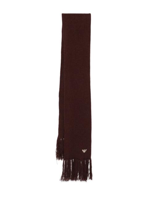 brown ribbed knit fringed edge embroidered logo - length: 270.0 centimetres, width: 30.0 centimetres - Color: BROWN - Made in: China - Designer Style ID: AF17000 EM003651 U6279 Composition and care Cotton: 30.0%, Polyamide: 45.0%, Virgin Wool: 25.0%