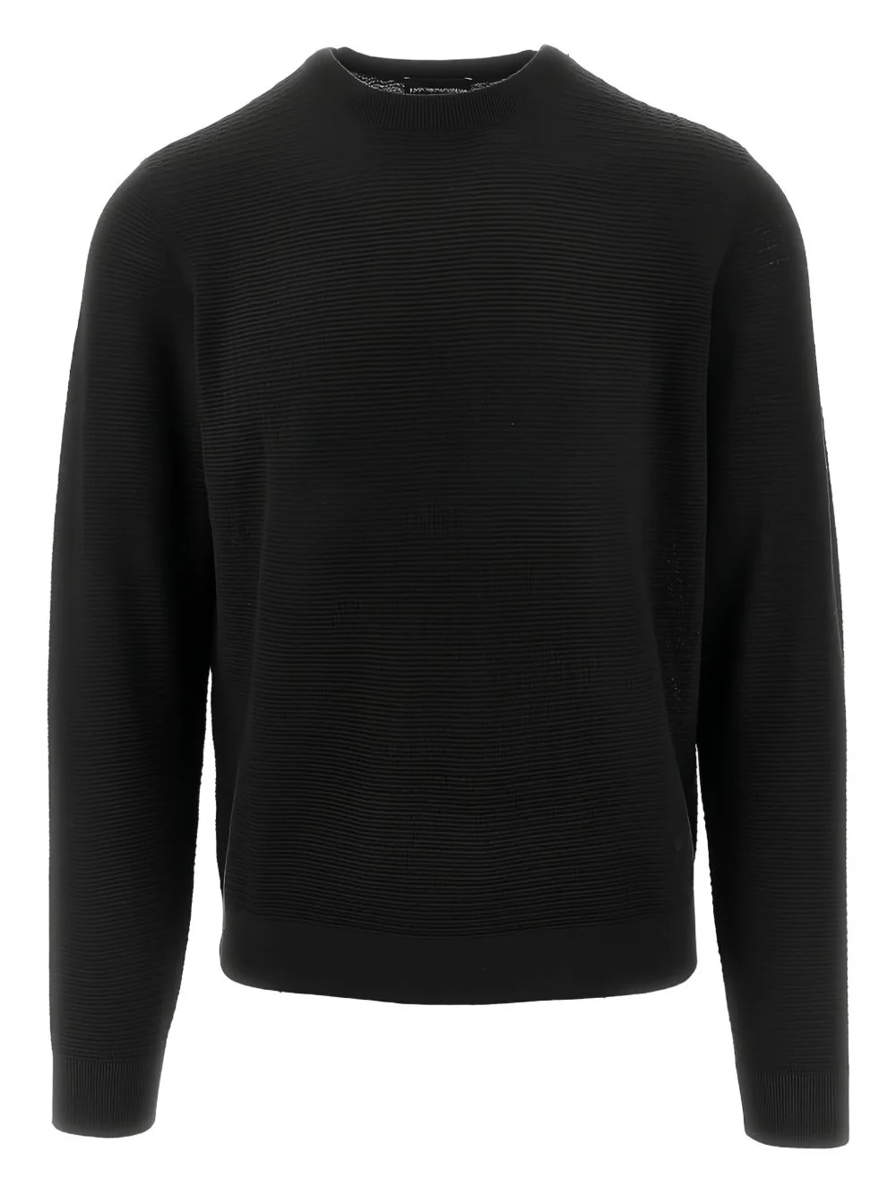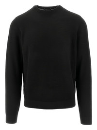 ribbed sweater Highlights - Black - Textured knit - Logo detail - Round neck - Long sleeves - Ribbed hem Imported Composition Wool 100% Washing instructions Read Manufacturer Guidelines