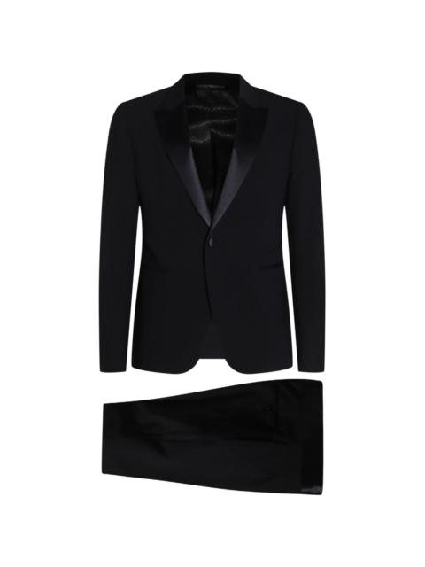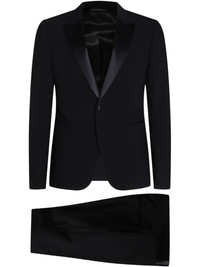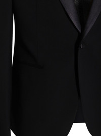 satin-trim suit Highlights - Black - Front button fastening - Concealed front fastening - Two front jetted pockets - Two side slash pockets Made in Italy Composition Virgin Wool 96%, Elastane 4%