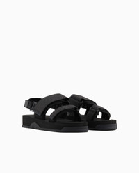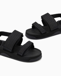 Sandals with practical Velcro straps, made of scuba and jacquard fabric with all-over logo lettering. A selection of sandals combining comfort, innovation and design, with a thermoformed EVA footbed and rubber sole with a semi-transparent effect. The distinctive feature of these sandals is the back that can be removed via practical hooks, so they can also be worn as mules. Scuba upper Jacquard details Logo lettering Velcro closure Detachable back Product Code: X4P141XR343K001