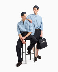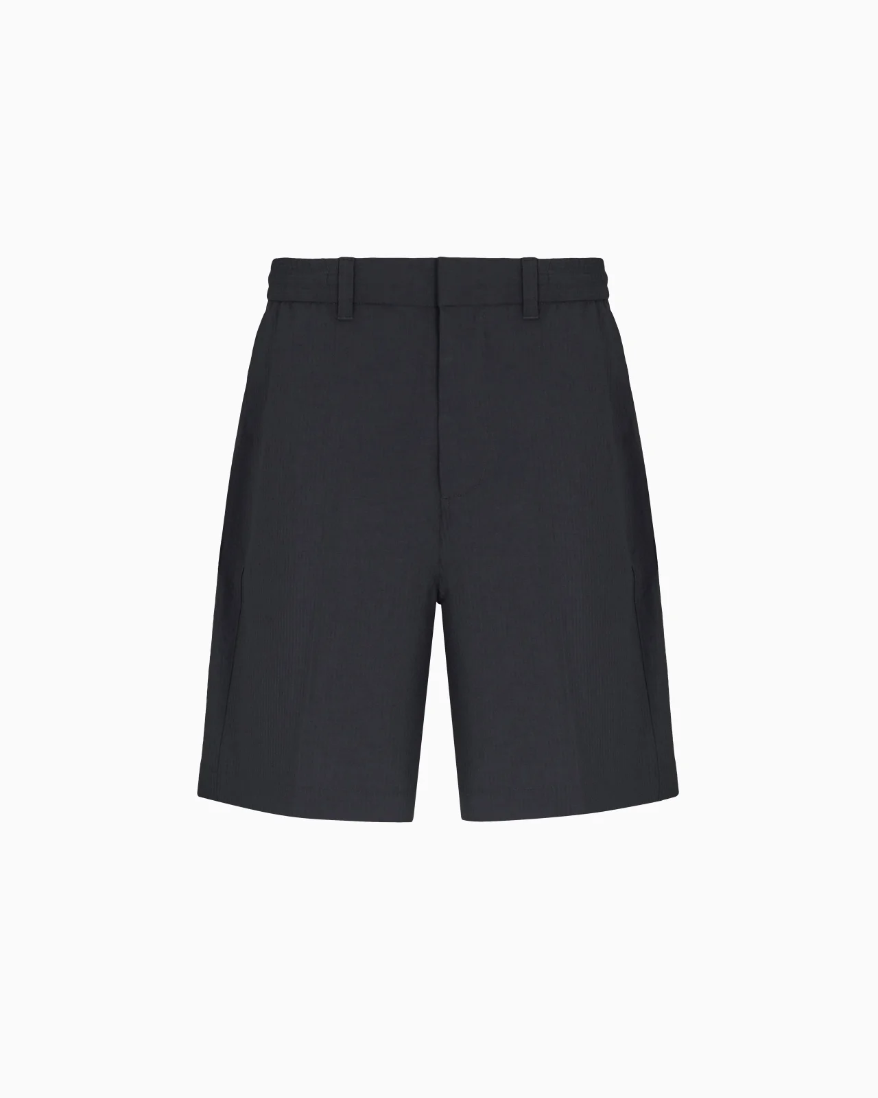 Bermuda shorts with an elasticated back and internal drawstring waist, made of featherweight nylon. A modern design that blends with the exclusive seersucker fabric, one of the most popular Armani textures that gives the entire piece a dynamic, crinkly feel. A garment with an urban appeal that is a must-have for the summer wardrobe. Nylon Seersucker Waist with belt loops Inner drawstring Closure with zip, hook and back button Side pockets Elasticated back waist Back double welt pockets Product Code: EM001151AF13674UB118